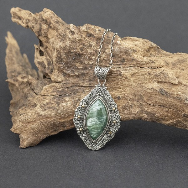 Serafinit - kamień o harmonizującej energii, jeden z najsilniej działających energetycznie minerałów. Przynosi spokój i ukojenie, łagodzi stres i napięcia. Wnosi harmonię do otoczenia. Otwierając trzecie oko pomaga nie tylko w rozwoju duchowym, ale też w obudzeniu zdolności samouzdrawiania.