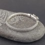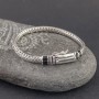 Męska bransoletka wykonana ze srebra próby 925. Łańcuch został upleciony ręcznie. Szerokość łańcucha 7 mm. Długość bransolety 22 cm. Zapięcie ozdobione zostało wstawkami wykonanymi z czarnego onyksu.