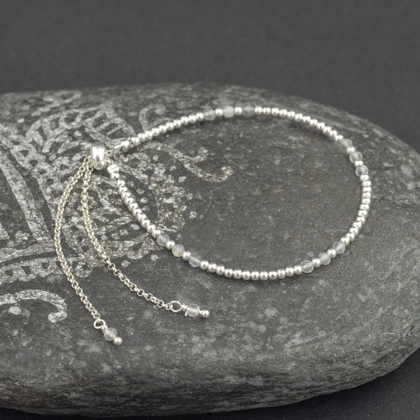 Bransoletka od podstaw wykonana ręcznie ze srebra próby 925 oraz kamieni labradorytu. Wielkość kamieni 3 mm. Wielkość srebrnych kuleczek 2 mm. Bransoletka będzie pasowała na nadgarstek o obwodzie 15-18 cm.