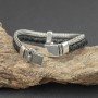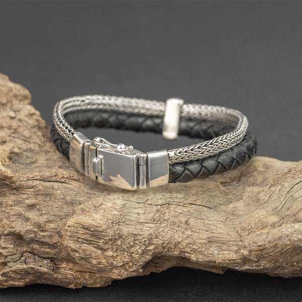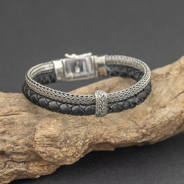 Bransoletka od podstaw wykonana została ręcznie ze srebra próby 925 oraz skórzanego rzemienia. Grubość srebrnego łańcucha 5,5 mm; grubość rzemienia 6 mm. Całkowita grubość bransoletki 12 mm. Rzemień i łańcuch łączy srebrny ozdobny pierścień. Długość bransoletki 20,8 cm.
