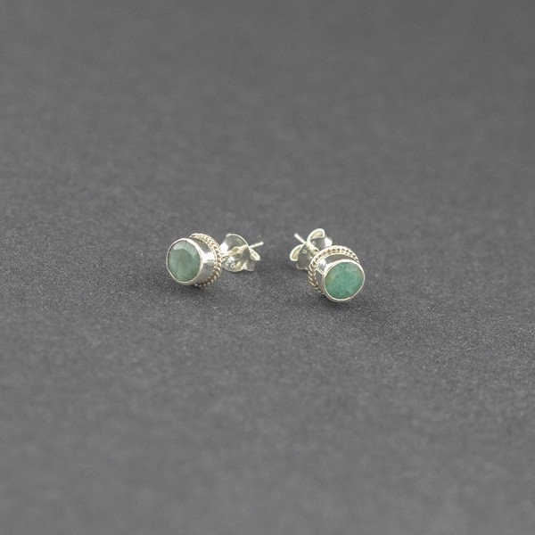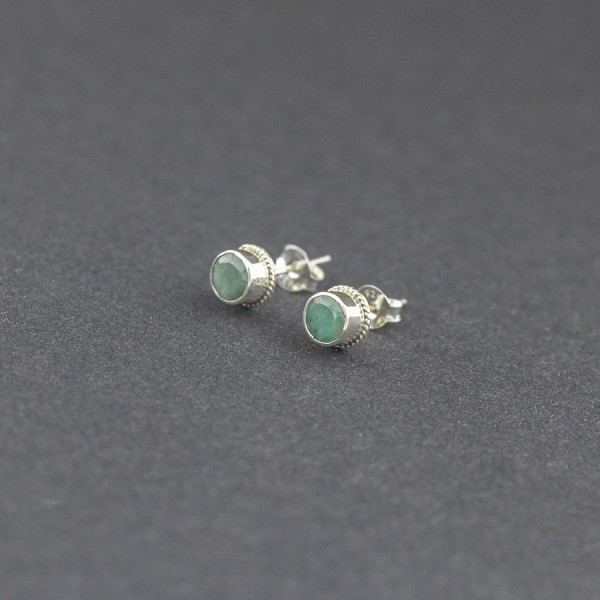 Kolczyki - sztyfty od podstaw wykonane ręcznie ze srebra próby 925 z oprawionymi kamieniami szmaragdu. Wielkość kamieni 5 mm. Wielkość kolczyków 6,5 mm.