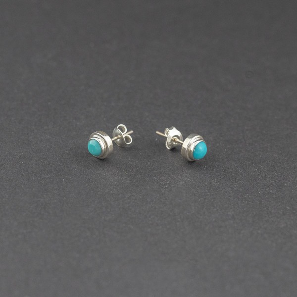 Kolczyki - sztyfty od podstaw wykonane ręcznie ze srebra próby 925 z oprawionymi kamieniami turkusu (5 mm). Wielkość kolczyków 7 mm.
