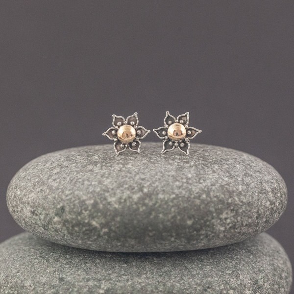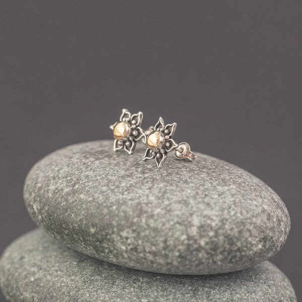Kolczyki - sztyfty wykonane od postaw ręcznie ze srebra próby 925 oraz 18-karatowego złota. Wielkość kolczyków 12 mm.