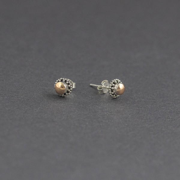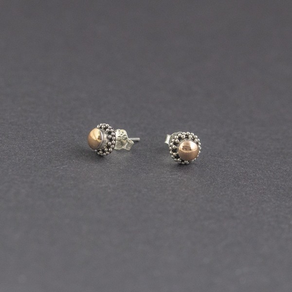 Kolczyki - sztyfty wykonane od postaw ręcznie ze srebra próby 925 oraz 18-karatowego złota. Wielkość kolczyków 7 mm.
