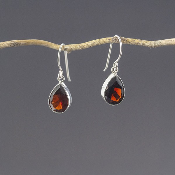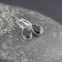 Eleganckie kolczyki od podstaw wykonane zostały ręcznie ze srebra próby 925 z oprawionym kamieniem granatu. Wielkość kamienia 12x8 mm. Wielkość tarczy kolczyka 13x9 mm. Długość całkowita kolczyków 2,9 cm.