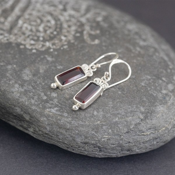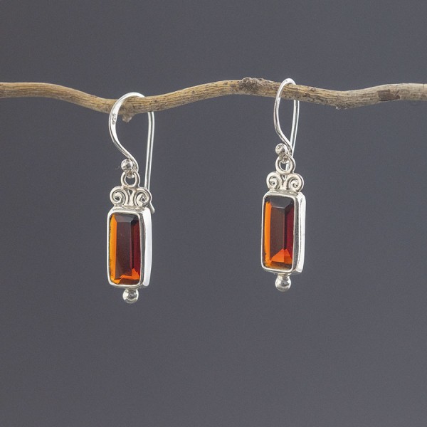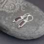 Eleganckie kolczyki od podstaw wykonane zostały ręcznie ze srebra próby 925 z oprawionym kamieniem granatu. Wielkość kamienia 11x5 mm. Długość całkowita kolczyków 3,4 cm. Kolczyki stworzone z myślą o Paniach lubiących drobną biżuterię.