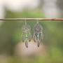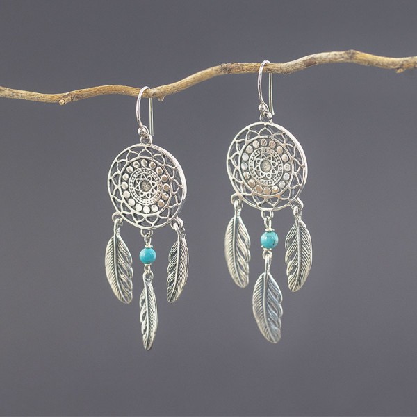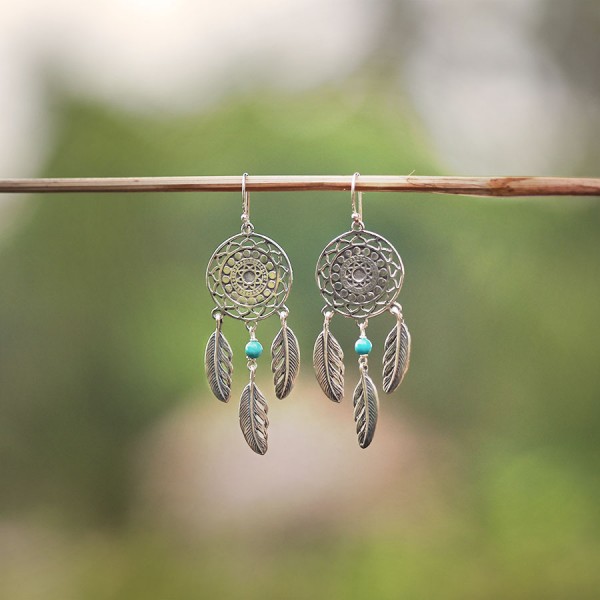 Kolczyki w stylu boho od podstaw wykonane zostały ręcznie ze srebra próby 925 oraz kamieni turkusu. Wielkość kamieni 4,5 mm. Wielkość tarczy kolczyka 22 mm. Wielkość piórka 21x7 mm. Długość całkowita kolczyków 7 cm. Zdobienia wykonane zostały po obu stronach kolczyka. Pojedynczy egzemplarz!