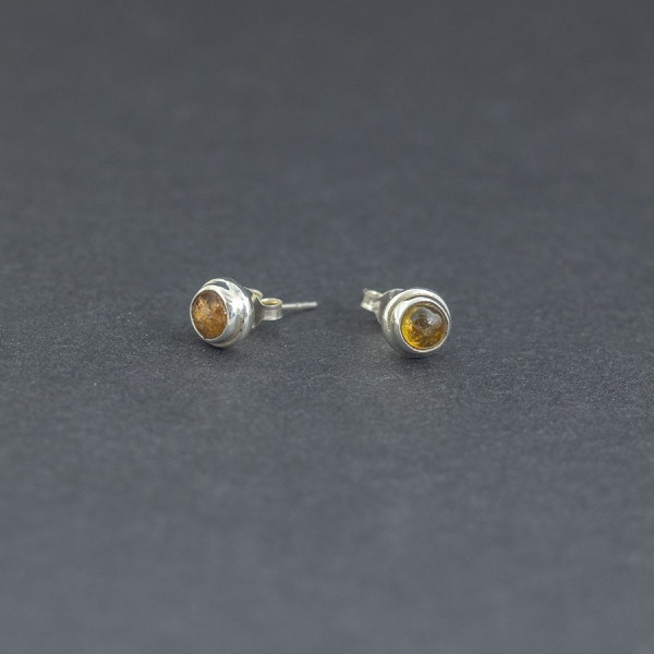 Kolczyki od podstaw wykonane ręcznie ze srebra próby 925 z oprawionym kamieniem turmalinu (4,5 mm). Wielkość kolczyków 7 mm.