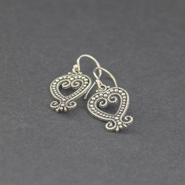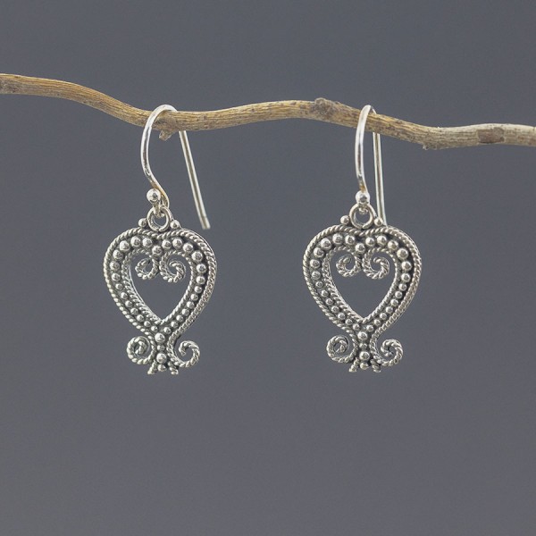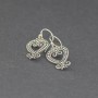 Kolczyki od podstaw wykonane zostały ręcznie ze srebra próby 925. Wielkość tarcz kolczyka 15x18 mm. Długość całkowita kolczyków 3,5 cm.