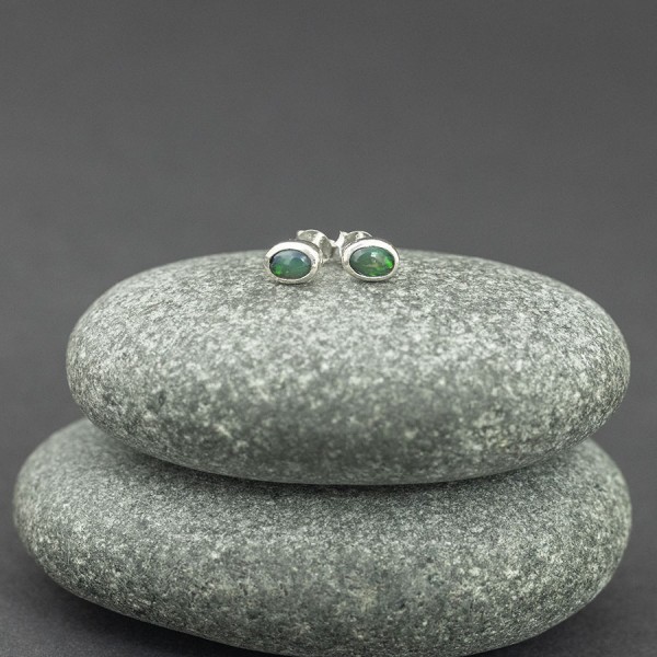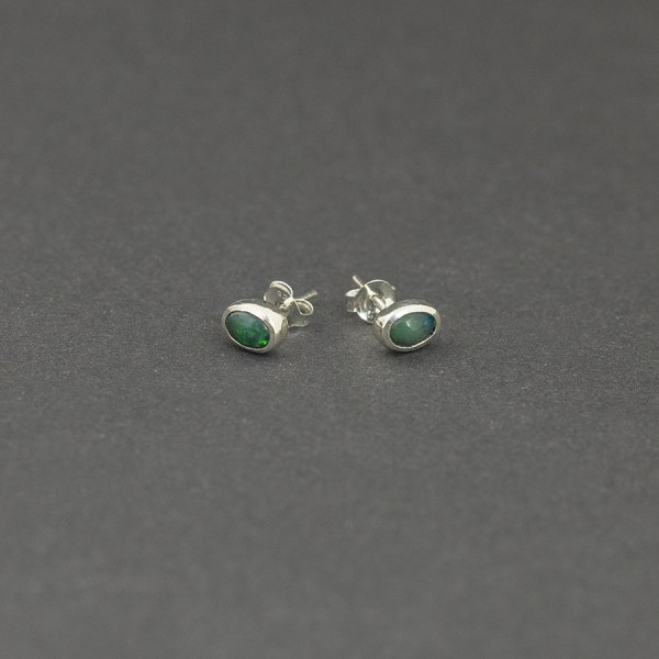 Kolczyki - sztyfty wykonane ze srebra próby 925 z oprawionymi kamieniami opalu etiopskiego. Wielkość kamienia 6x4 mm. Wielkość kolczyków 7x5 mm.