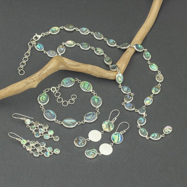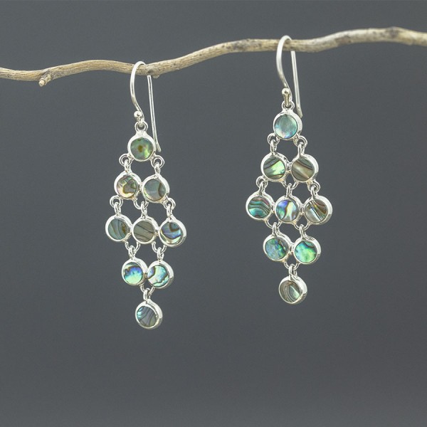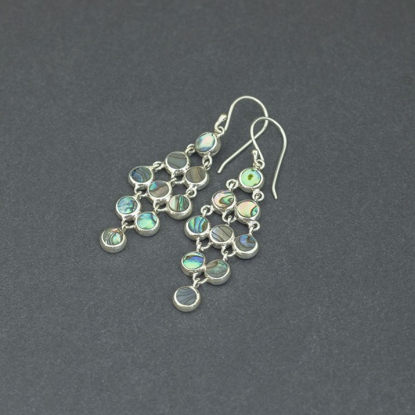 Efektowne kolczyki od podstaw wykonane zostały ręcznie ze srebra próby 925 z oprawioną muszlą paua. Wielkość pojedynczego ogniwka 6 mm. Długość całkowita kolczyków 5,7 cm. Do kompletu polecam naszyjnik 16577 i bransoletkę 16579.