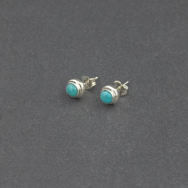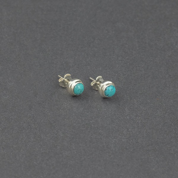 Kolczyki - sztyfty od podstaw wykonane ręcznie ze srebra próby 925 z oprawionymi kamieniami turkusu (5 mm). Wielkość kolczyków 7 mm.
