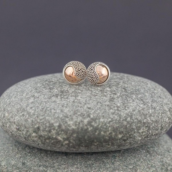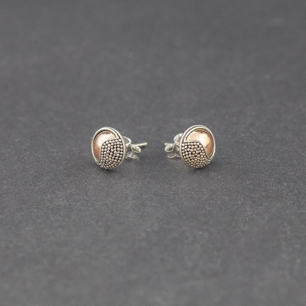 Kolczyki - sztyfty wykonane od postaw ręcznie ze srebra próby 925 oraz 18-karatowego złota. Wielkość kolczyków 9 mm.