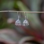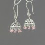 Niezwykle kolczyki z orientalnym akcentem, od podstaw wykonane ręcznie ze srebra próby 925 z wiszącymi kamieniami turmalinu. Wielkość srebrnego „abażurka" 17x12 mm. Długość całkowita kolczyków 4,6 cm.
