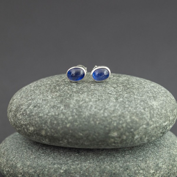 Kolczyki - sztyfty wykonane ze srebra próby 925 z oprawionymi kamieniami szafiru (5x7 mm). Wielkość kolczyków 6x8 mm.