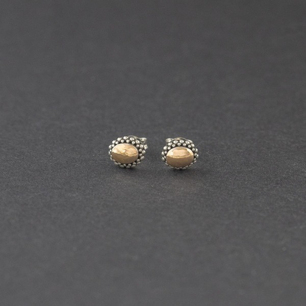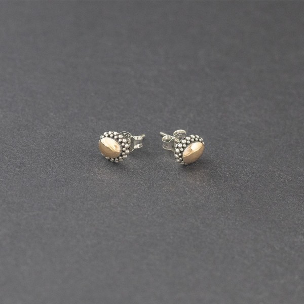 Kolczyki - sztyfty wykonane od postaw ręcznie ze srebra próby 925 oraz 18-karatowego złota. Wielkość kolczyków 7x8 mm. Całość zdobień wykonana została ręcznie pracochłonną techniką granulacji.