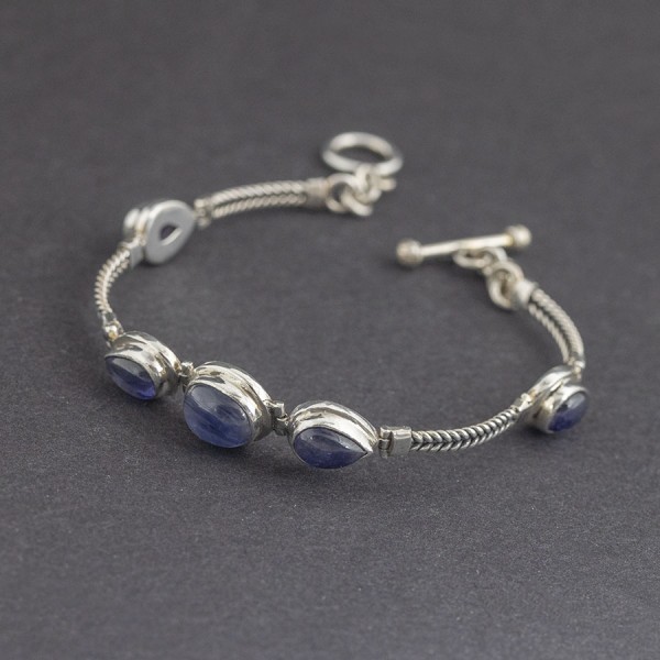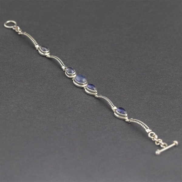 Elegancka bransoletka od podstaw wykonana została ręcznie ze srebra próby 925 z oprawionymi kamieniami oolitu. Wielkość kamieni 6x8 mm i 8x10 mm. Długość bransoletka 20 cm (po zapięciu 19,5 cm). Na życzenie mogę wymienić zapięcie na karabińczyk. Pojedynczy egzemplarz!