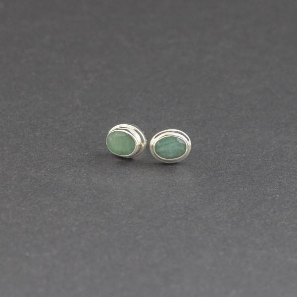 Kolczyki - sztyfty od podstaw wykonane ręcznie ze srebra próby 925 z oprawionymi kamieniami szmaragdu (6x8 mm). Wielkość kolczyków 8x10 mm.