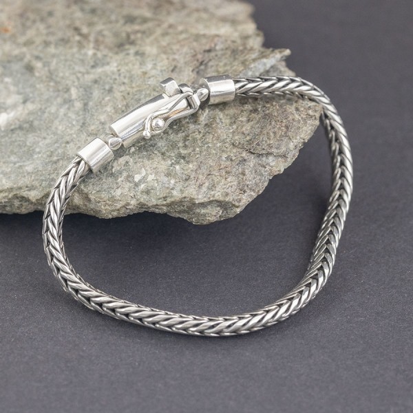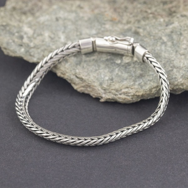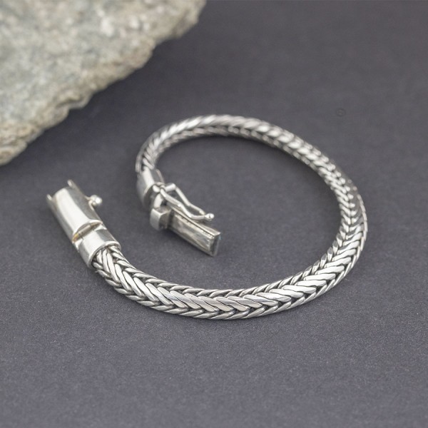 Bransoletka wykonana od podstaw ręcznie ze srebra próby 925. Szerokość łańcucha 6 mm. Długość bransolety 20 cm.