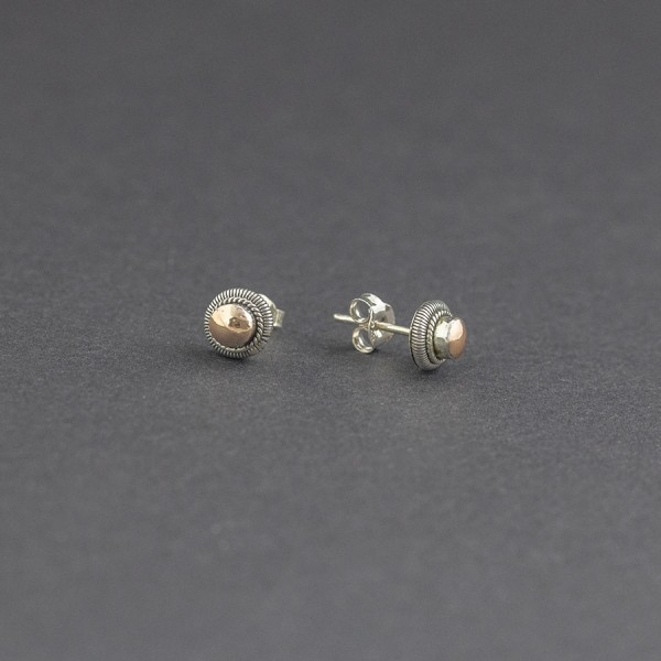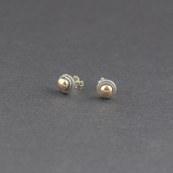 Kolczyki - sztyfty wykonane od postaw ręcznie ze srebra próby 925 oraz 18-karatowego złota. Wielkość kolczyków 8 mm.
