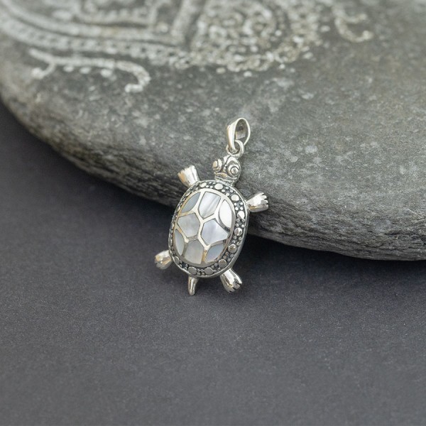 Wisiorek w formie żółwika od podstaw wykonany został ręcznie ze srebra próby 925 oraz masy perłowej. Wielkość żółwika 20x29 mm. Długość wisiorka 3,9 mm. Wisiorek będzie stanowił wspaniały prezent dla wielbicieli podwodnego świata.