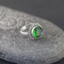 Pierścionek od podstaw wykonany ręcznie ze srebra próby 925 z oprawionym kamieniem obsydianu zielonego. Wielkość obsydianu 12 mm. Wielkość tarczy pierścionka 17 mm. Rozmiar jubilerski 19.