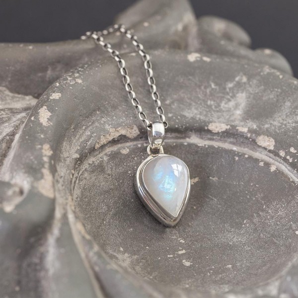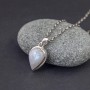 Wisior od podstaw wykonany ręcznie ze srebra próby 925 z oprawionym kamieniem księżycowym. Wielkość kamienia 13x17 mm. Wielkość tarczy wisiorka 21x16 mm. Długość całkowita wisiorka 3,2 cm.