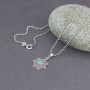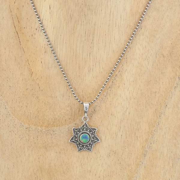 Delikatny wisiorek od podstaw wykonany ręcznie ze srebra próby 925 z oprawionym kamieniem opalu australijskiego. Wielkość kamienia 4 mm. Wielkość tarczy wisiorka 15 mm. Długość całkowita wisiorka 2,5 cm. Wisiorek zawiesiłam na łańcuszku długości 45,5 cm.