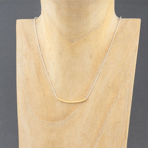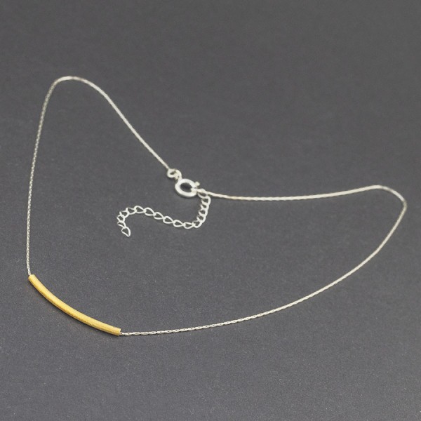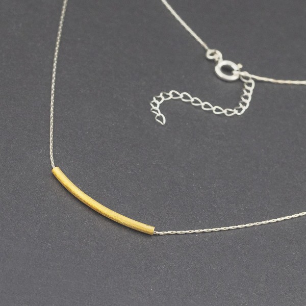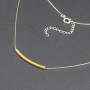 Delikatny naszyjnik od podstaw wykonany ręcznie ze srebra 925 oraz srebra pozłacanego. Wielkość złotego elementu 2x30 mm. Długość łańcuszka 40,5 cm + 5 cm łańcuszka wydłużającego.