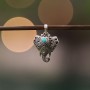 Wisiorek z motywem słonia od podstaw wykonany ręcznie ze srebra próby 925 z oprawionym kamieniem turkusu. Wielkość kamienia 5 mm. Wielkość słonika 25x23 mm. Długość całkowita wisiorka 3,4 cm. Na uwagę zasługują zdobienia wykonane również z tyłu wisiorka.