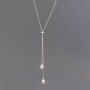 Elegancki naszyjnik od podstaw wykonany ręcznie ze srebra próby 925 oraz białych perełek słodkowodnych. Łańcuszek posiada przesuwną obręcz pozwalającą regulować jego długość. Długość całkowita łańcuszka to 66 cm plus wiszące perełki. Wielkość pereł 10x7 mm. Naszyjnik będzie stanowił idealny dodatek na co dzień. Może stać się również świetnym uzupełnieniem wieczorowej kreacji.