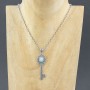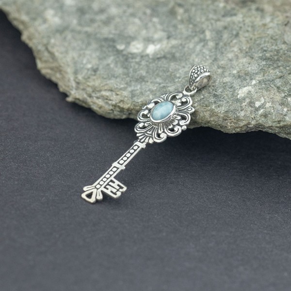 Srebrny wisiorek w formie kluczyka od podstaw wykonany ręcznie ze srebra próby 925. Wisiorek ozdabia kamień larimaru wielkości 5x7 mm. Wielkość kluczyka 16x42 mm. Długość całkowita wisiorka 5,3 cm.
