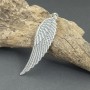 Wyjątkowy wisior w formie skrzydła od podstaw wykonany ręcznie ze srebra próby 925. Wisiorek jest obustronnie zdobiony. Wielkość skrzydła 29x88 mm. Długość całkowita wisiorka 10,3 cm.