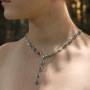Efektowny naszyjnik od podstaw wykonany został ręcznie ze srebra próby 925 z oprawioną muszlą paua. Wielkość pojedynczego ogniwka 9x11 mm. Długość naszyjnika 42 cm + 4,5 cm łańcuszka regulującego. Długość wiszącej części 6,5 cm. Do kompletu polecam kolczyki 16578 lub bransoletkę 16579.
