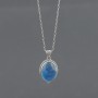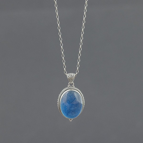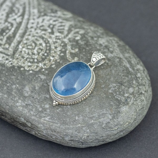 Elegancki wisiorek wykonany został ręcznie ze srebra próby 925 z oprawionym kamieniem akwamarynu. Wielkość akwamarynu 20x26 mm. Wielkość tarczy wisiora 30x24 mm. Długość całkowita wisiorka 4,4 cm.