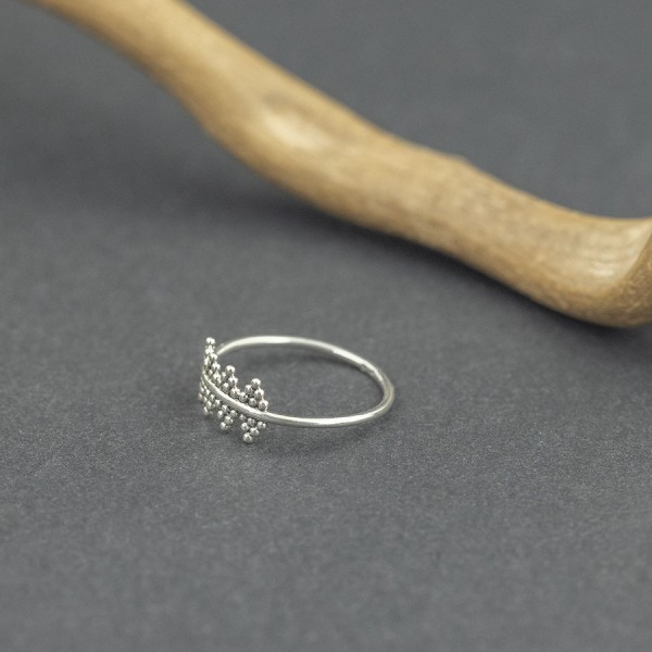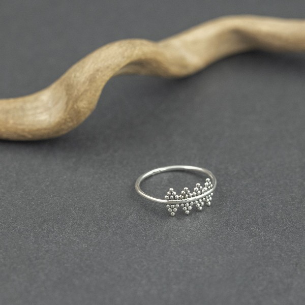 Pierścionek od podstaw wykonany został ręcznie ze srebra próby 925. Kuleczka po kuleczce ułożony został orientalny wzór. Pierścionek występuje w rozmiarze jubilerskim 12, 14 i 16 (wybrany rozmiar pierścionka proszę podać w komentarzu do zamówienia).