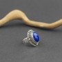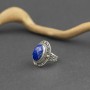 Absolutnie niezwykły pierścionek od podstaw wykonany ręcznie ze srebra próby 925 oraz 18-karatowego złota. Pośród zdobień oprawiony został fasetowany kamień lapisu lazuli. Wielkość kamienia 15x11 mm. Wielkość tarczy pierścionka 18x24 mm. Rozmiar jubilerski 14.